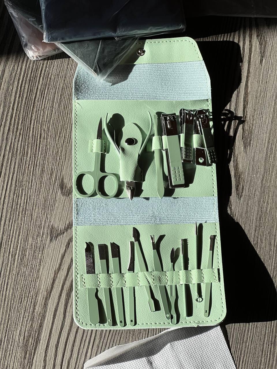 Багатофункціональний та практичний набір для манікюру, педикюру та догляду за обличчям відмінної якості з 16 різних елементів, які задовольнять усі потреби догляду за нігтями (манікюру та педикюру) і навіть обличчям. Набір у стильному шкіряному футлярі, що надійно закривається кнопкою.